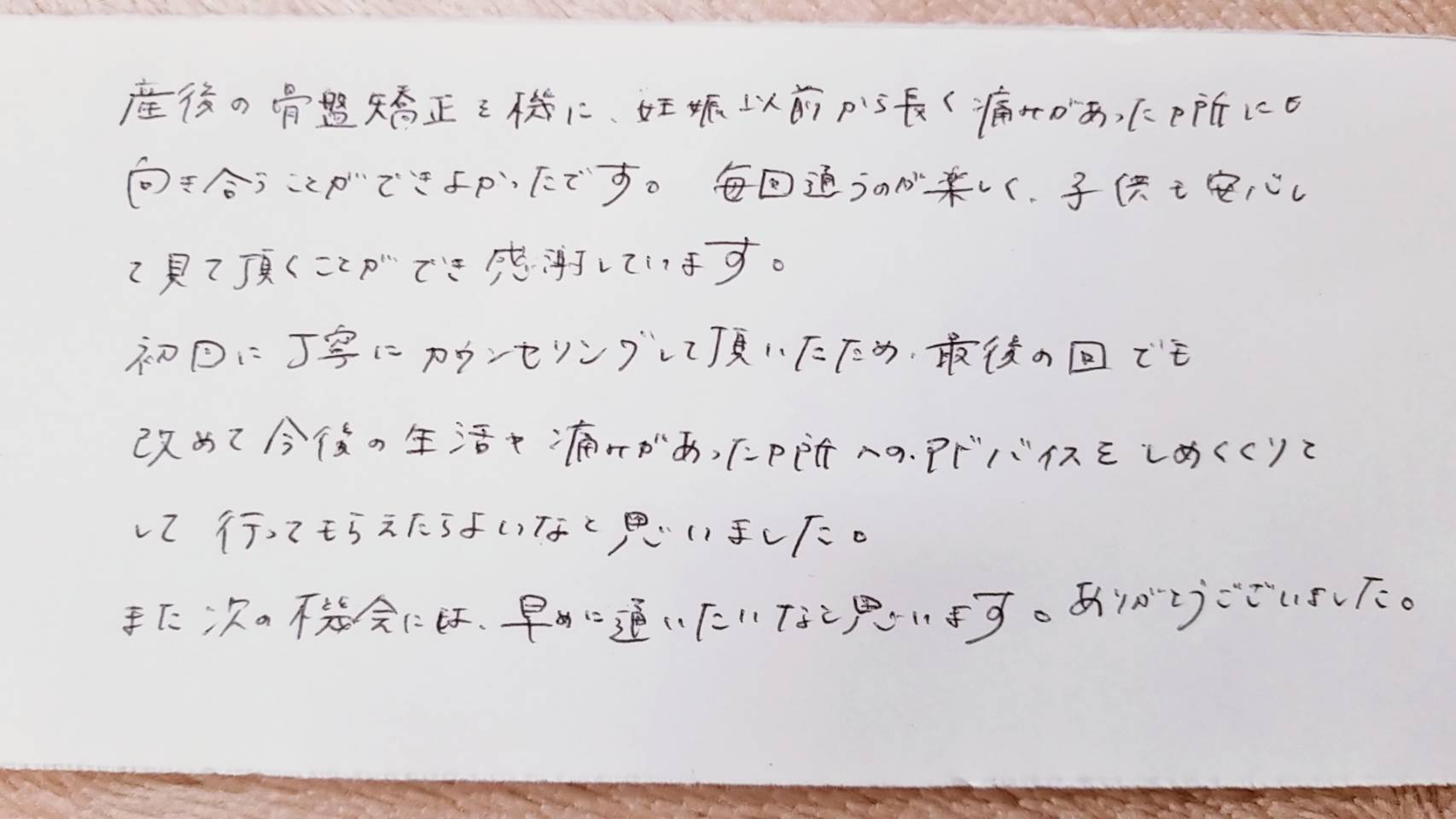 患者様の声(血流プログラム)、患者様の声(産後の骨盤矯正プログラム)