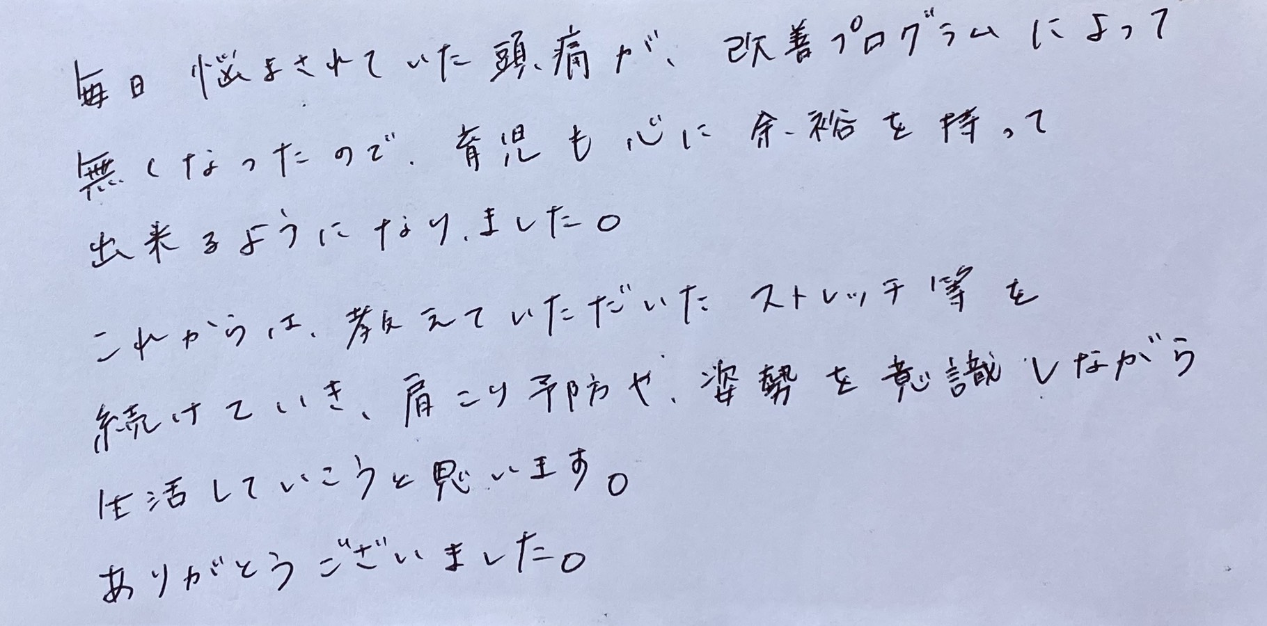 患者様の声(猫背・O 脚矯正・子どもの姿勢改善プログラム)