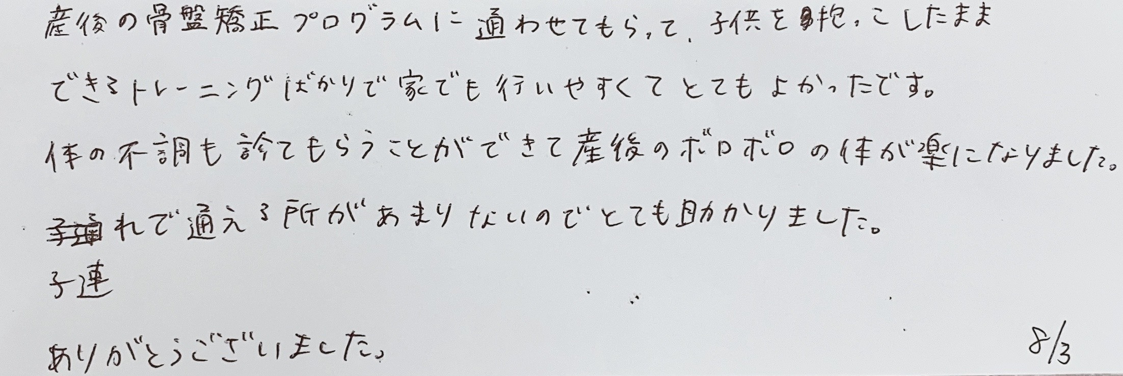 患者様の声(産後の骨盤矯正プログラム)