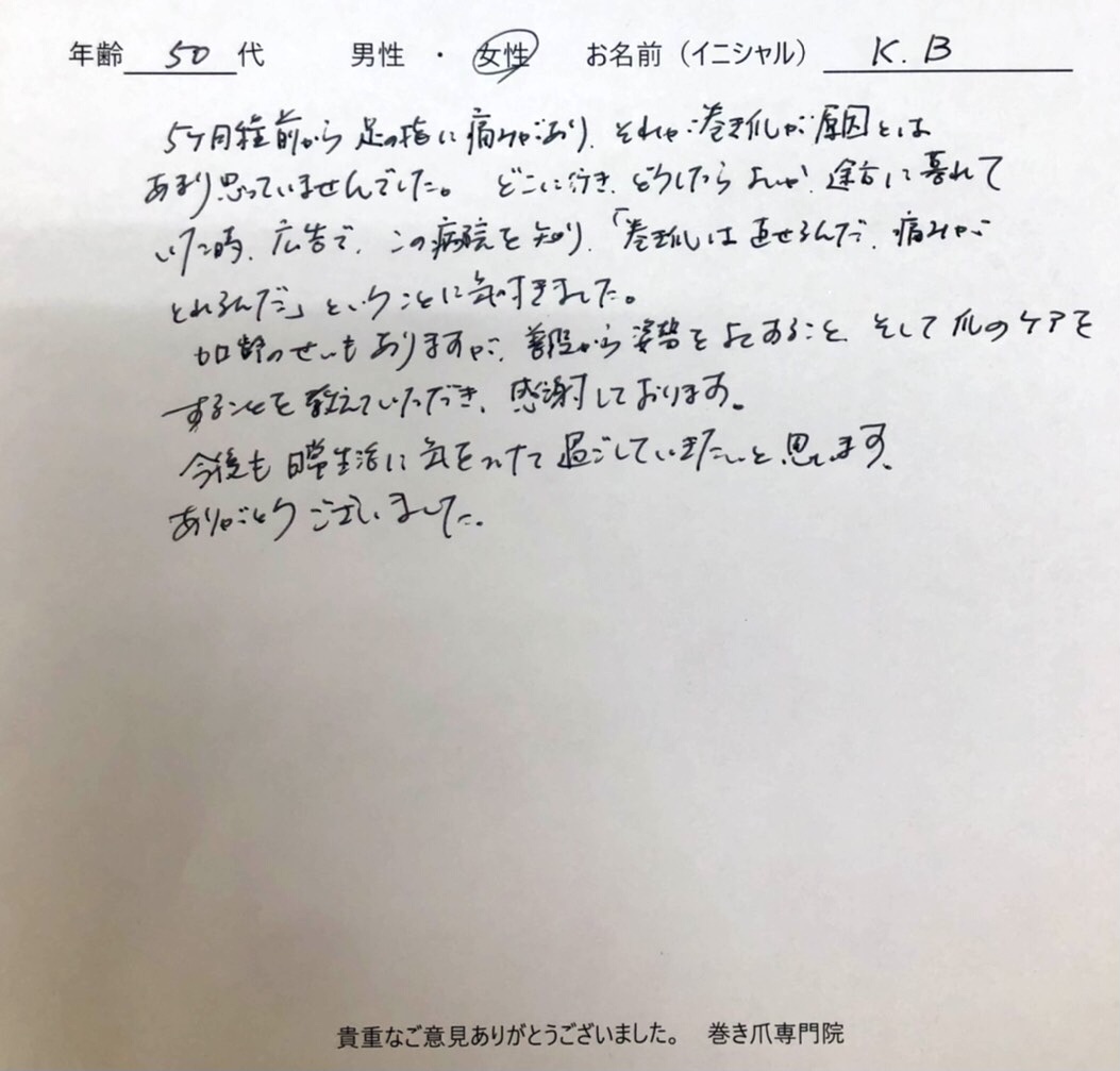 患者様の声(巻き爪)
