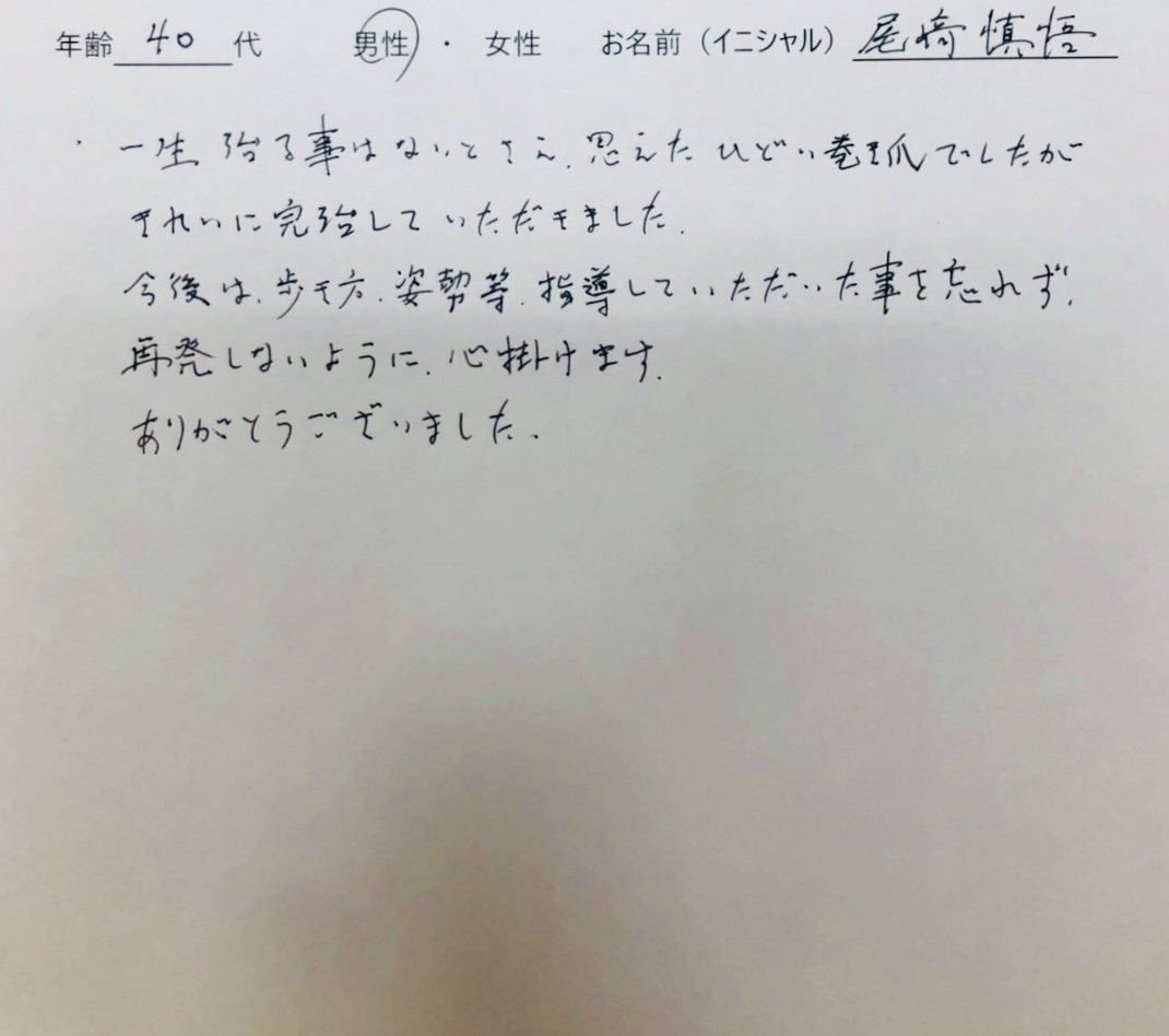 患者様の声(猫背・O 脚矯正・子どもの姿勢改善プログラム)