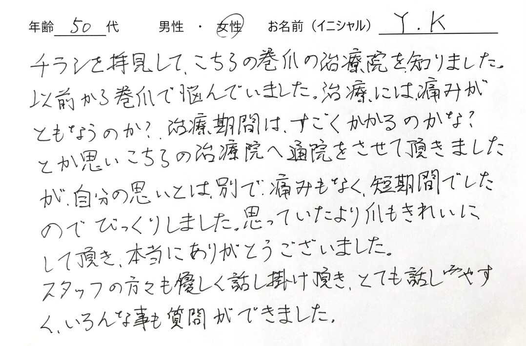 患者様の声(巻き爪)