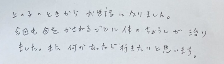 患者様の声(産後の骨盤矯正プログラム)