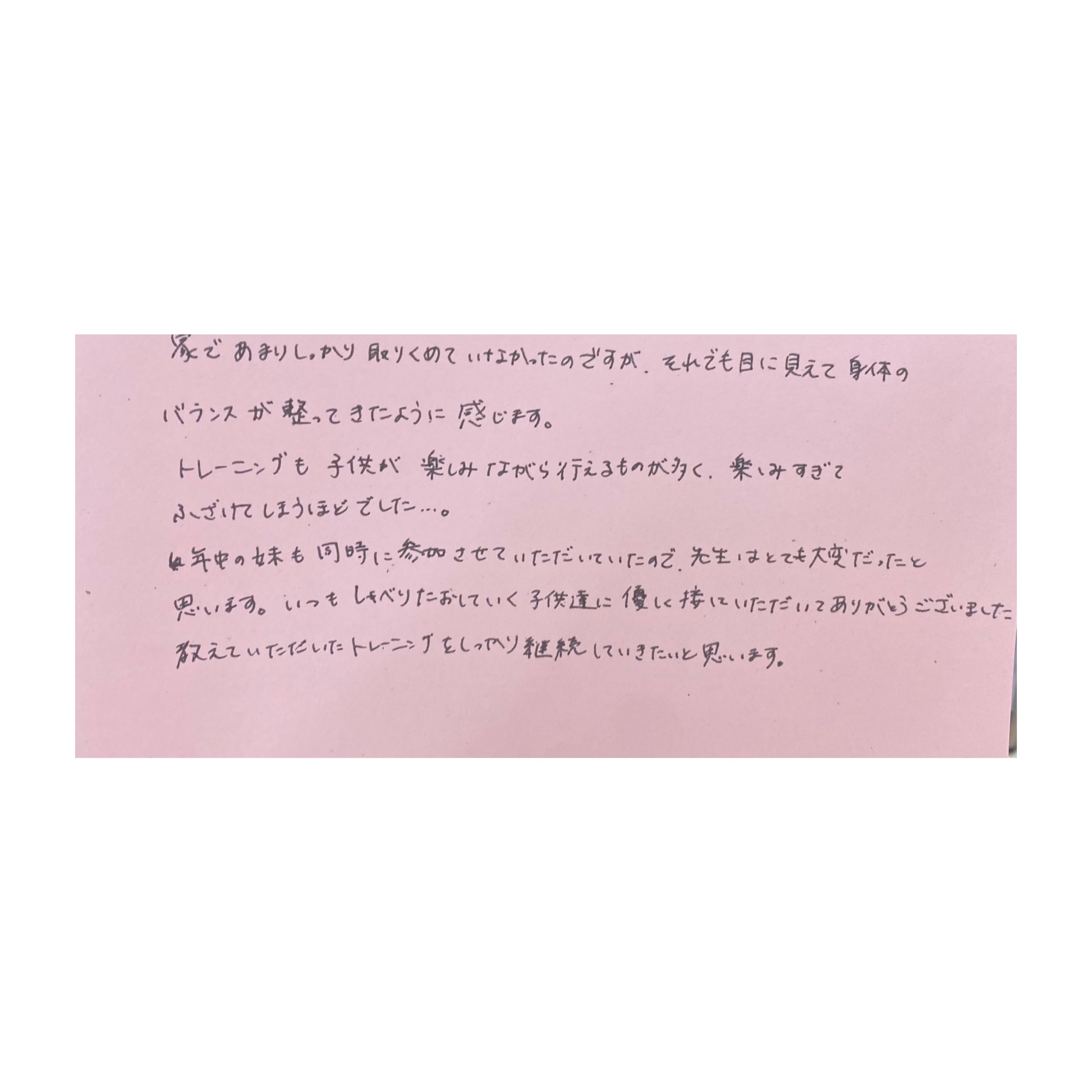 患者様の声(猫背・O 脚矯正・子どもの姿勢改善プログラム)