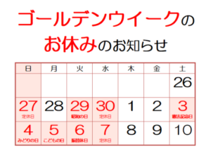 ☆ゴールデンウィークのお休みのお知らせ☆