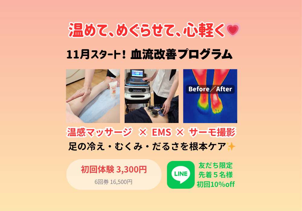 LINEお友だち限定 先着5名様「血流改善プログラム」初回10%OFFキャンペーン!