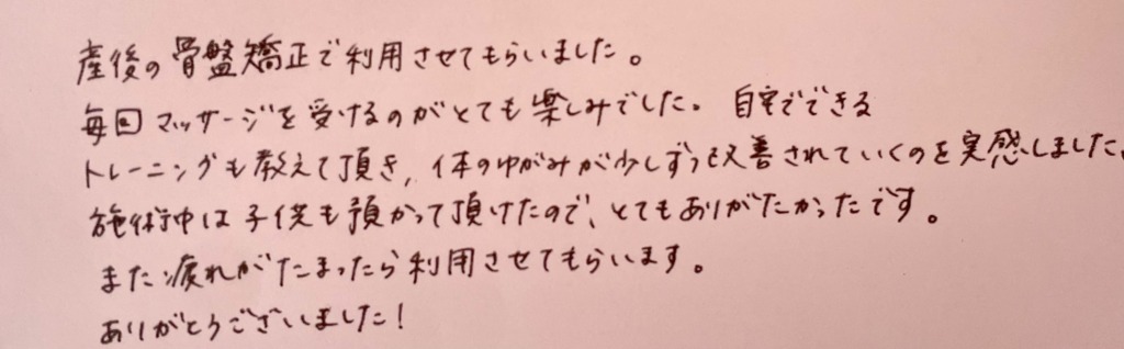 施術中は子供も預かって頂けたので、とてもありがたかったです。