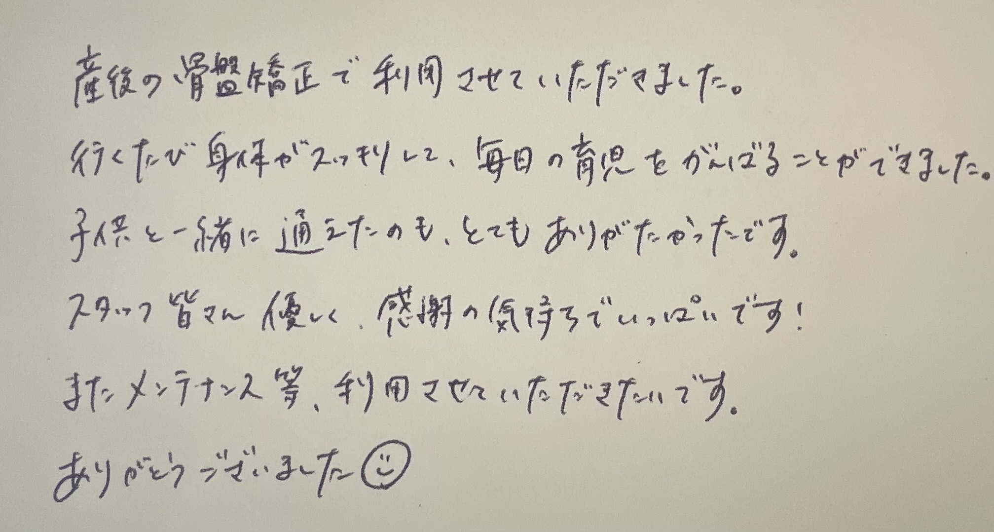 患者様の声(猫背・O 脚矯正・子どもの姿勢改善プログラム)