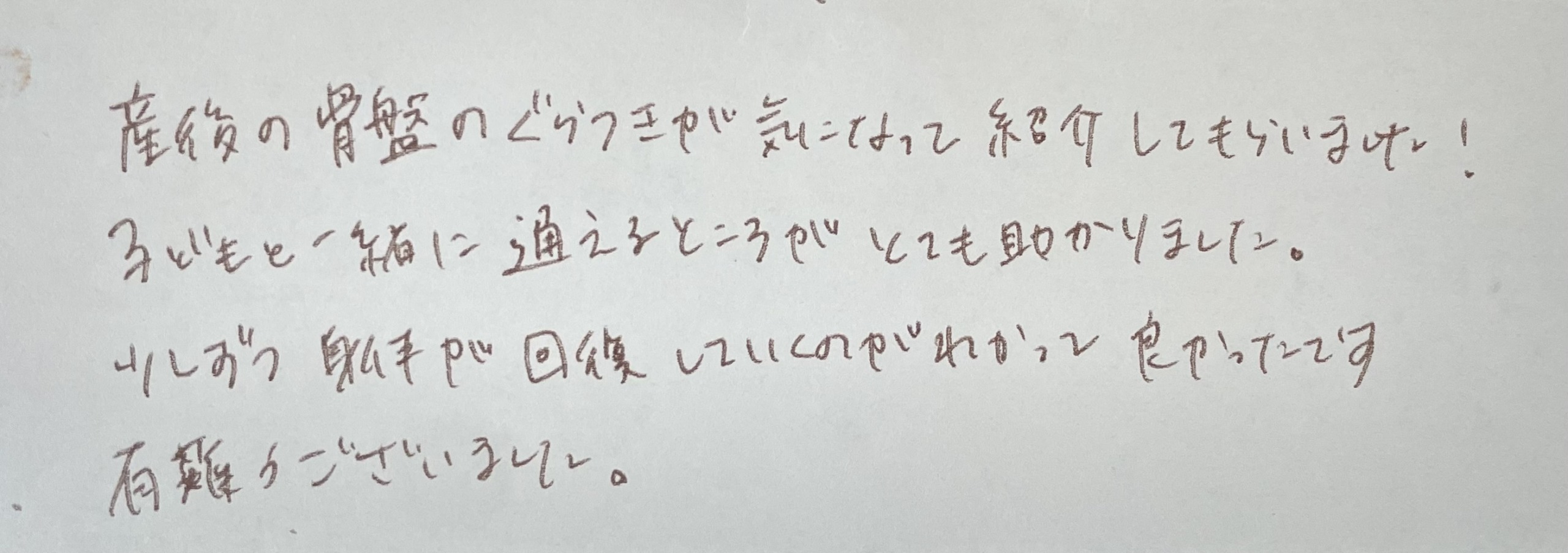 患者様の声(血流プログラム)、患者様の声(産後の骨盤矯正プログラム)