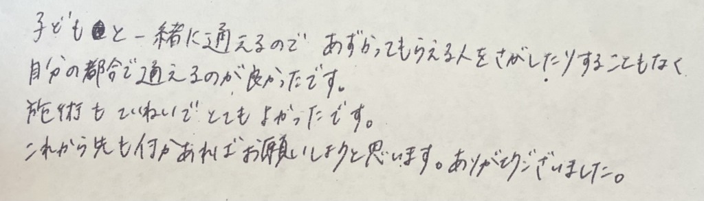 施術もていねいでとてもよかったです。