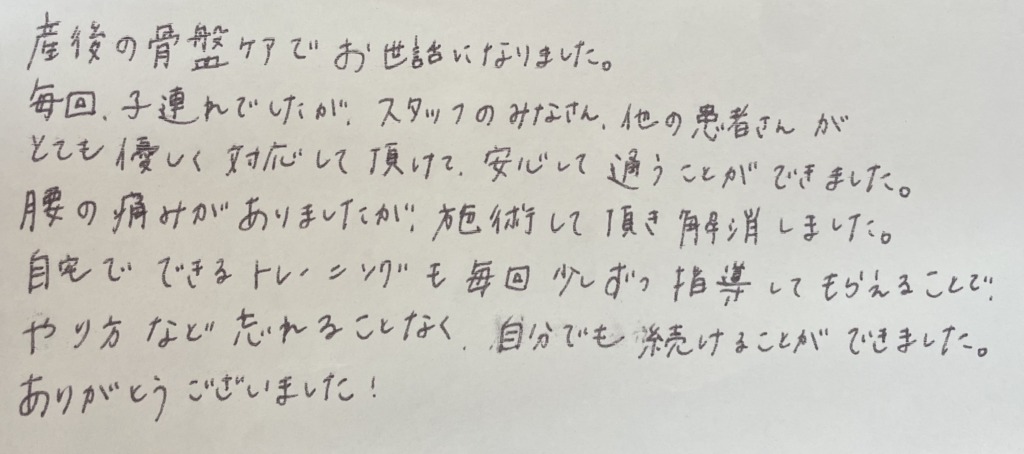 産後の骨盤ケアでお世話になりました。