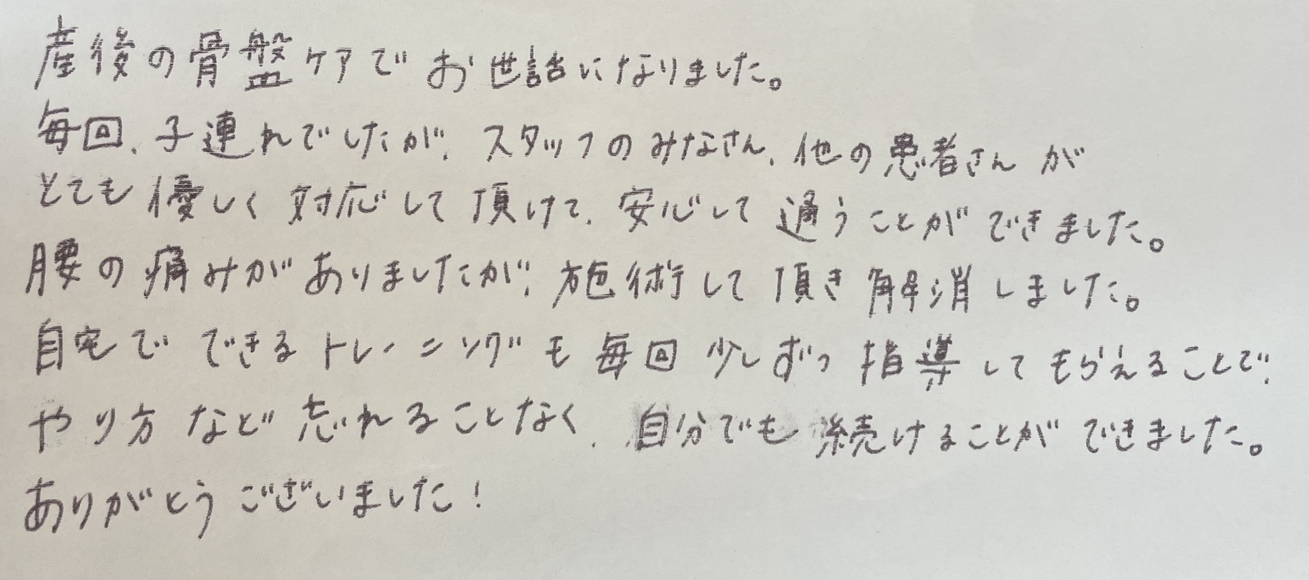 患者様の声(産後の骨盤矯正プログラム)
