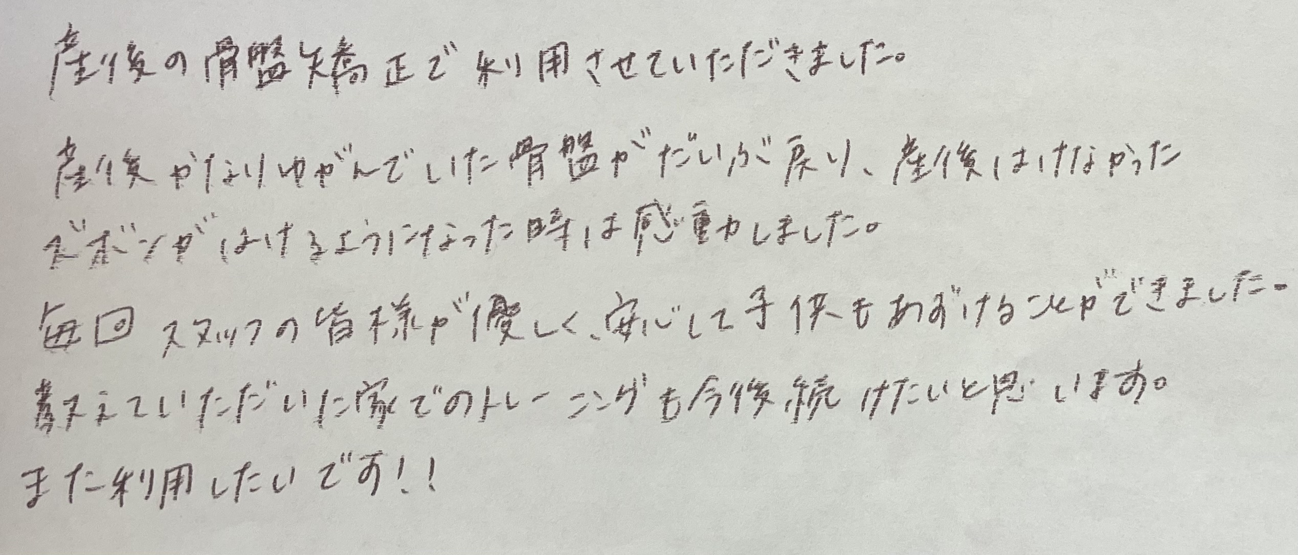 患者様の声(産後の骨盤矯正プログラム)