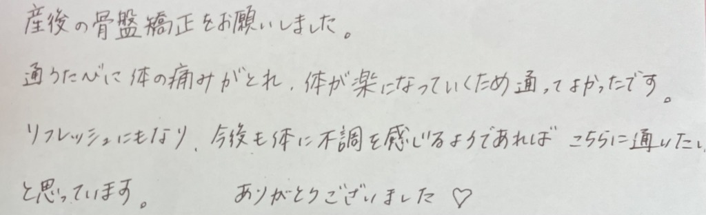 産後の骨盤矯正をお願いしました。